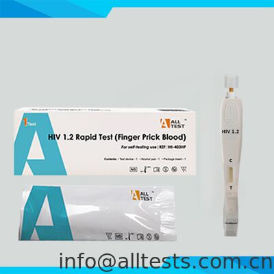 The HIV 1.2 Rapid Test (Finger Prick Blood) is a rapid chromatographic immunoassay for the qualitative detection of antibodies to Human Immunodeficiency virus (HIV) type 1 (including group O) and type 2 in human finger prick blood to aid in the diagnosis of HIV infection.